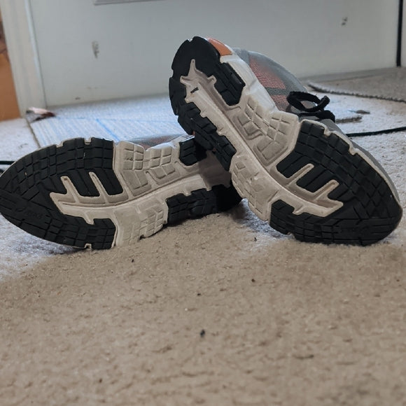 Comfortable ASICS running shoes in gray and pink. Ideal for athletic activities. Good pre-owned condition. Women's size 7.