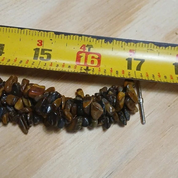 Elegant brown tiger's eye stone beaded necklace and bracelet set, perfect for adding a natural touch to any outfit. Choker necklace is about 17" long (pictured). bracelet is elastic. in very good, almost new condition. no blemishes.