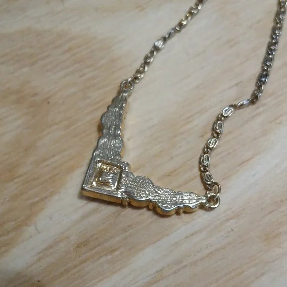 This elegant gold necklace adds a touch of sophistication to any outfit. Costume jewelry.