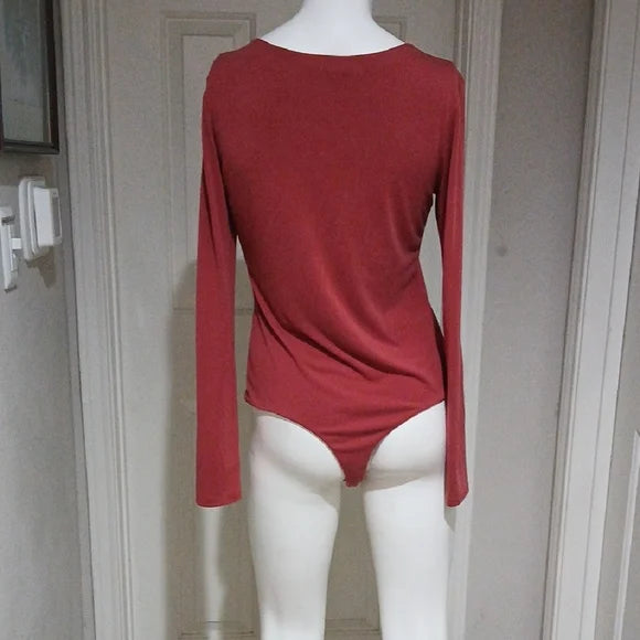 Gianni Bini Chic Deep Red V-Neck Bodysuit size L
