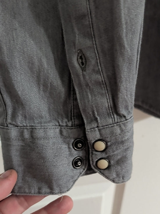 Jack & Jones Men's Gray Denim Peal Snap Button-Front Shirt Western Retro Large