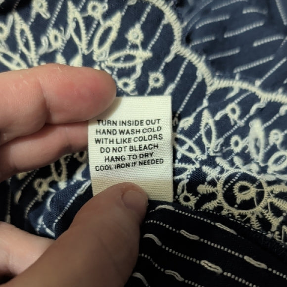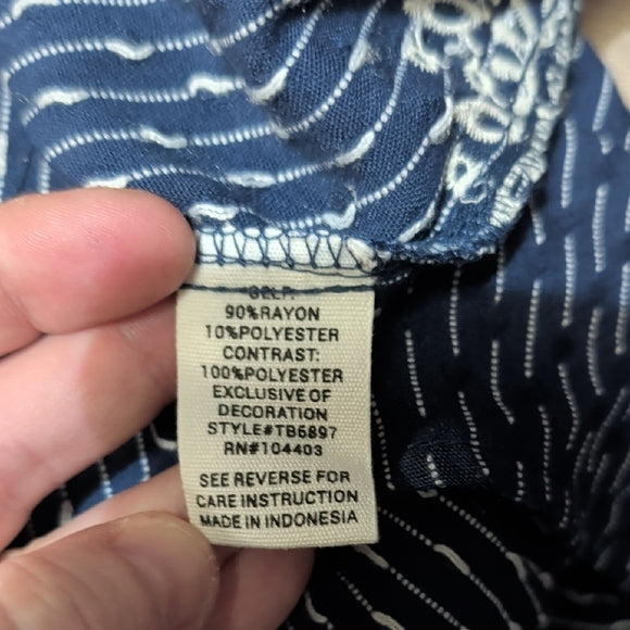 MINE Chic Navy Sleeveless Blouse with Lace Detail Cropped Small