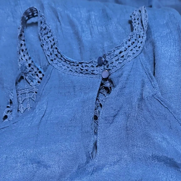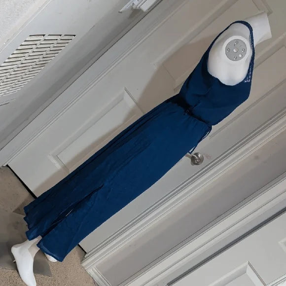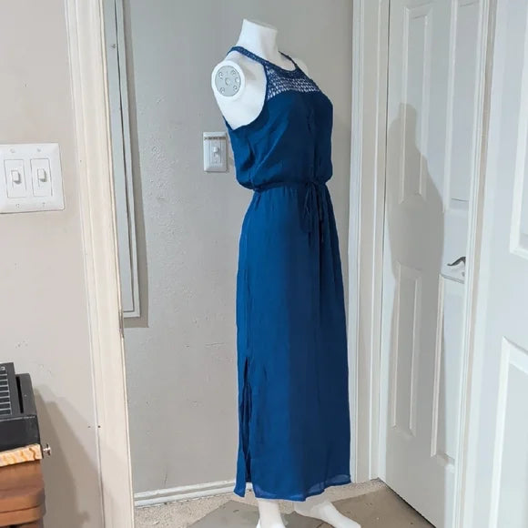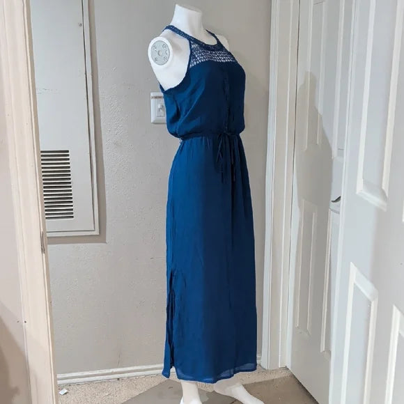 New York & Company Navy Crochet Yoke Halter Maxi Dress Women's Large