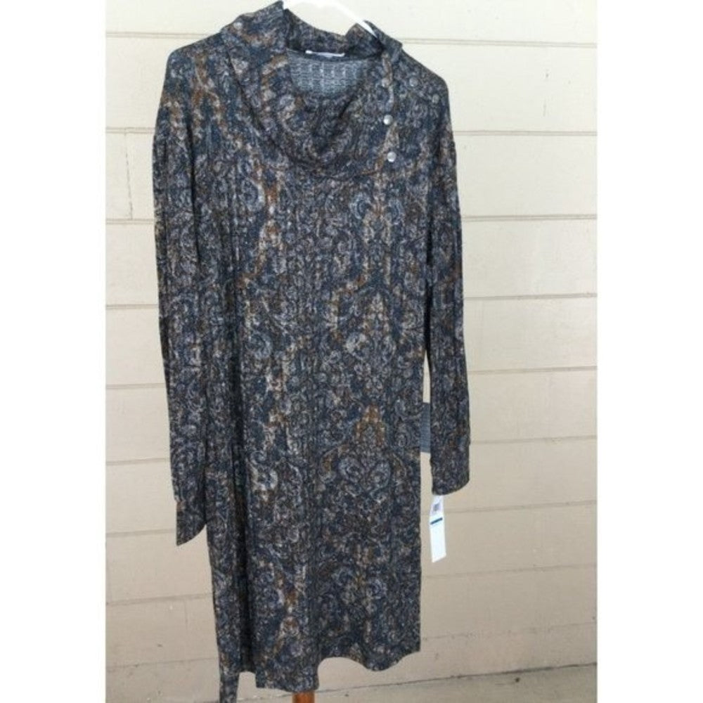NWT London Times Womens Dress Cowl Neck Shift Paisley Size XL Metallic Festive