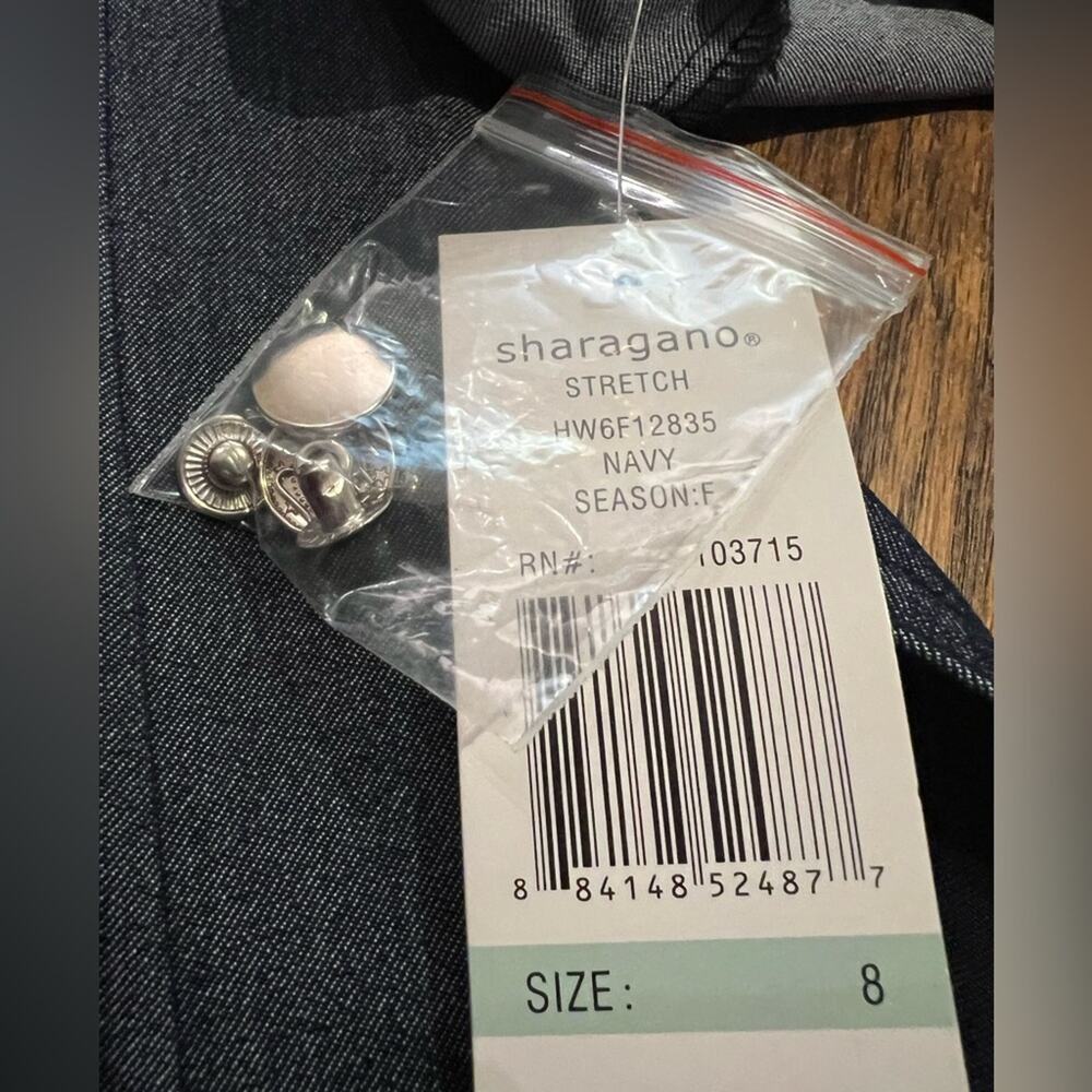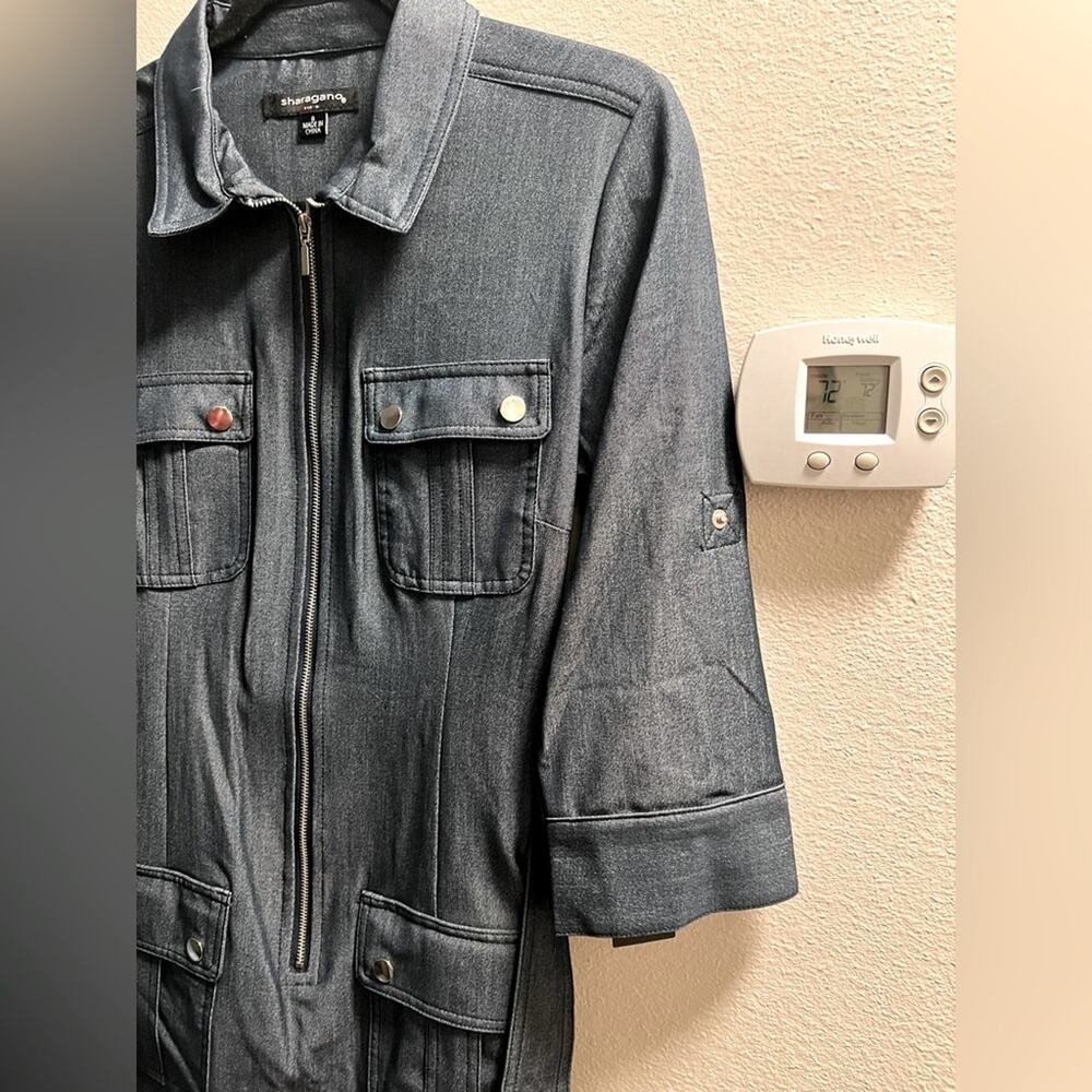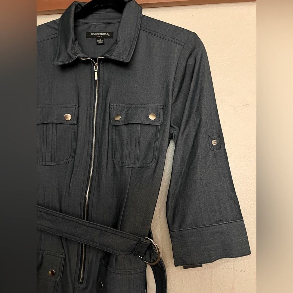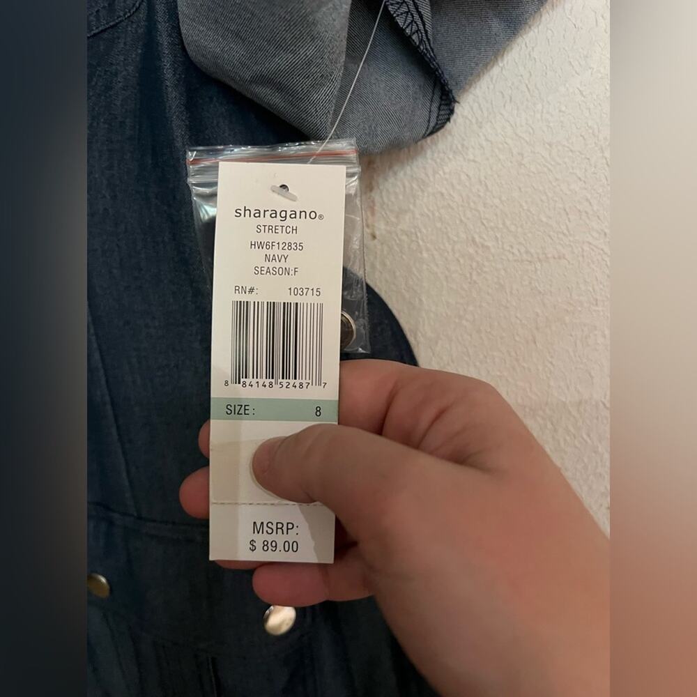 NWT Sharagano Stretch Navy Denim Style Midi Dress Size 8