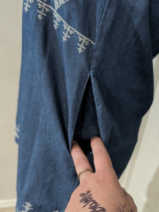 Romeo & Juliet Couture Navy Blue Top with White Embroidery Women's XS