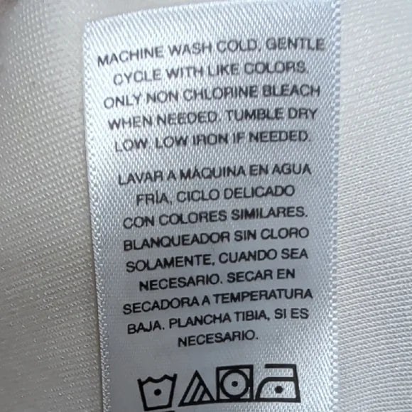 Fabric cause a lot of stretch. there's one or two spots of slight discoloration from use or age, as pictured in the last photograph. Very small and not noticeable.