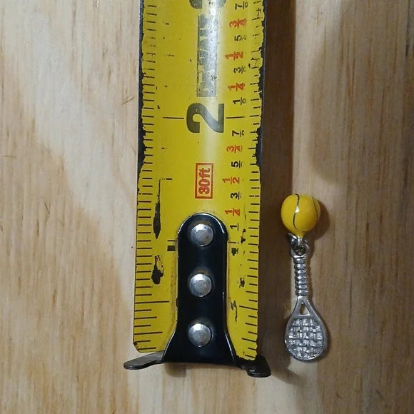 Silver Tennis Racket Charm with Yellow Enamel Tennis Ball