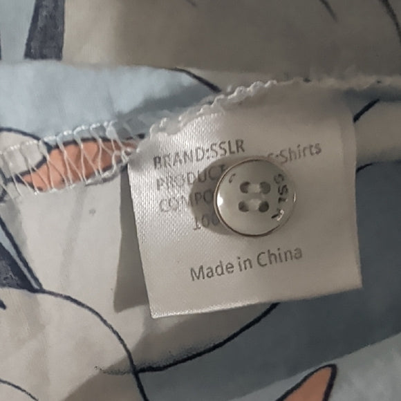 SSLR Men's Colection Swan Pattern Shirt - Light Blue and White L Button-Down