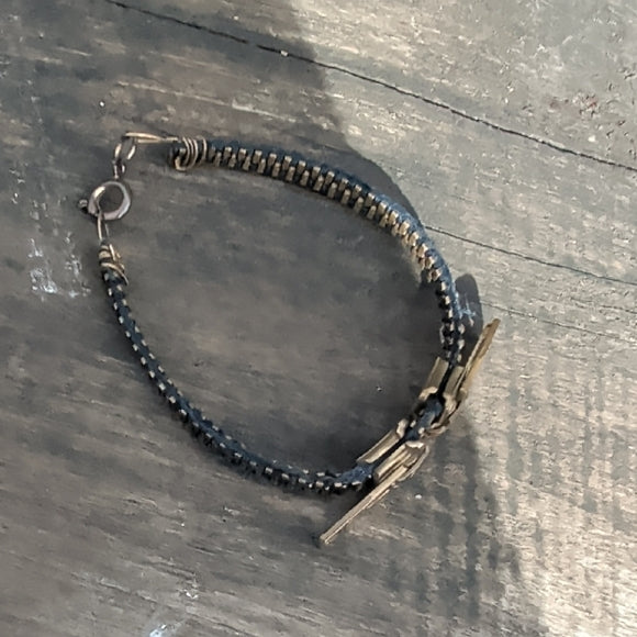 Add a unique touch to your outfit with this stylish zipper bracelet. Featuring a striking blue and gold design, this piece is perfect for any occasion.