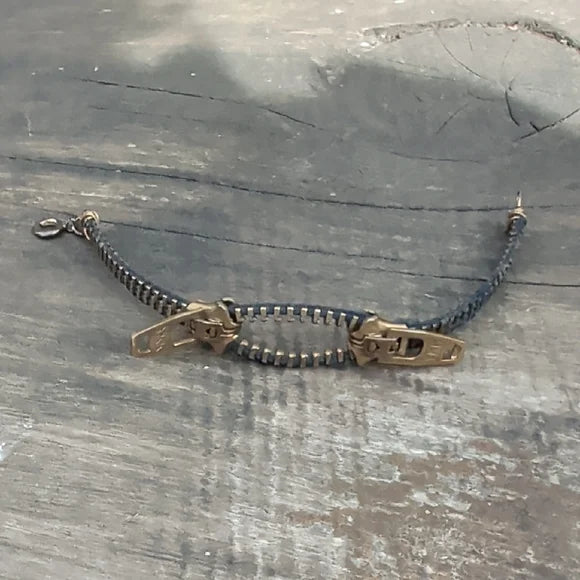 Stylish Zipper Bracelet in Blue and Gold