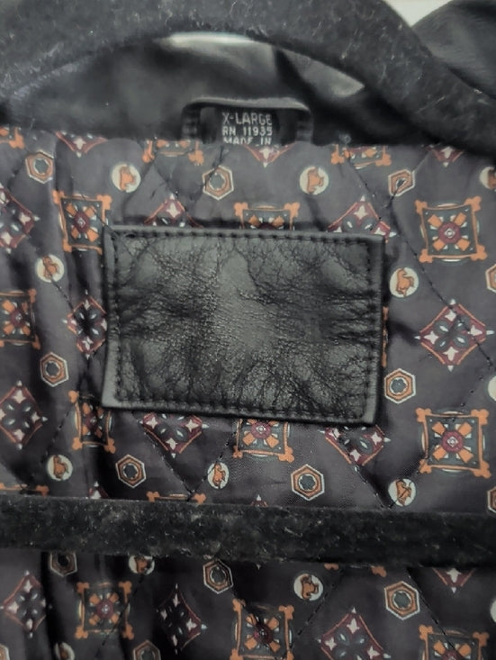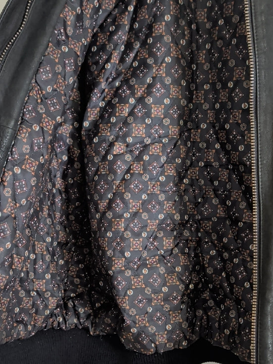 Vintage Black Leather Bomber Jacket with Ribbed Cuffs Men's XL