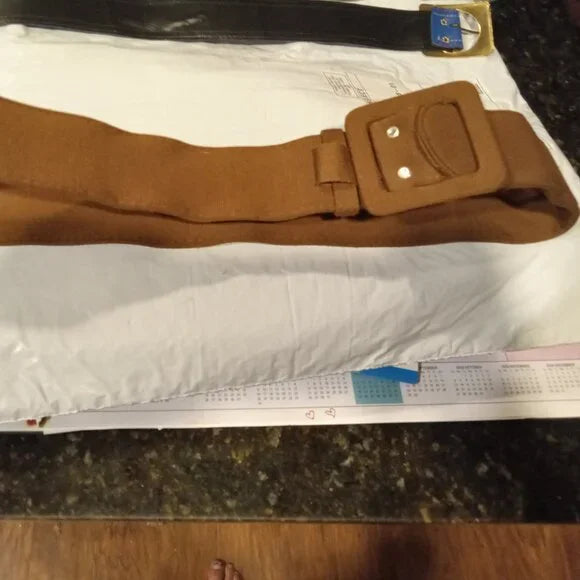 Vintage Brown Cloth Chunky Buckle Women's Belt