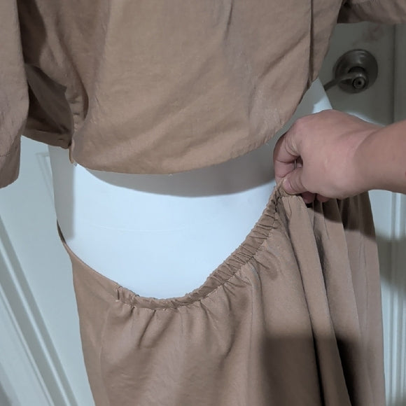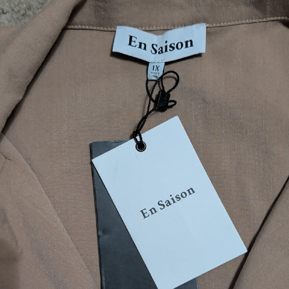 Stylish beige one-piece dress with a chic design. Perfect for any occasion. Size 1X, new with tags.