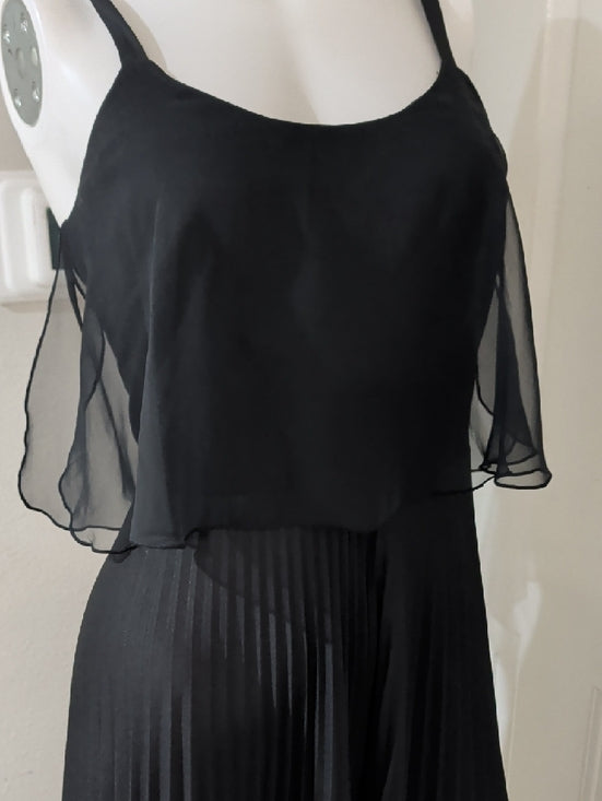 Vintage JT Dress Co Elegant Black Pleated Maxi Dress with Sheer Overlay Women 10