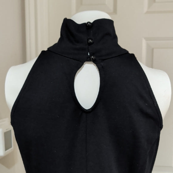 Vintage Lew Magram Black Halter Midi Dress - Elegant Sleeveless Design Women's M