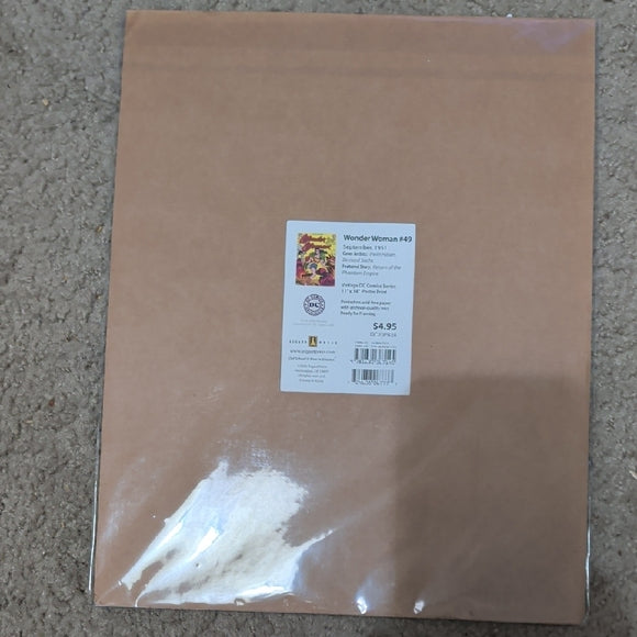 Classic Wonder Woman comic art print. Features bold red, blue, and yellow colors. Unopened, mint condition.